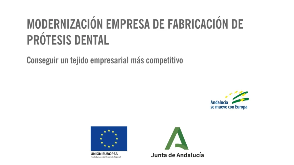 Se ha recibido un incentivo de la Agencia de Innovación y Desarrollo de Andalucía IDEA, de la Junta de Andalucía, por un importe de 35.668,00 €, cofinanciado en un 80% por la Unión Europea a través del Fondo Europeo de Desarrollo Regional, FEDER para la realización del proyecto “MODERNIZACIÓN DE EMPRESA DE FABRICACIÓN DE PRÓTESIS DENTAL” con el objetivo de CONSEGUIR UN TEJIDO EMPRESARIAL MÁS COMPETITIVO